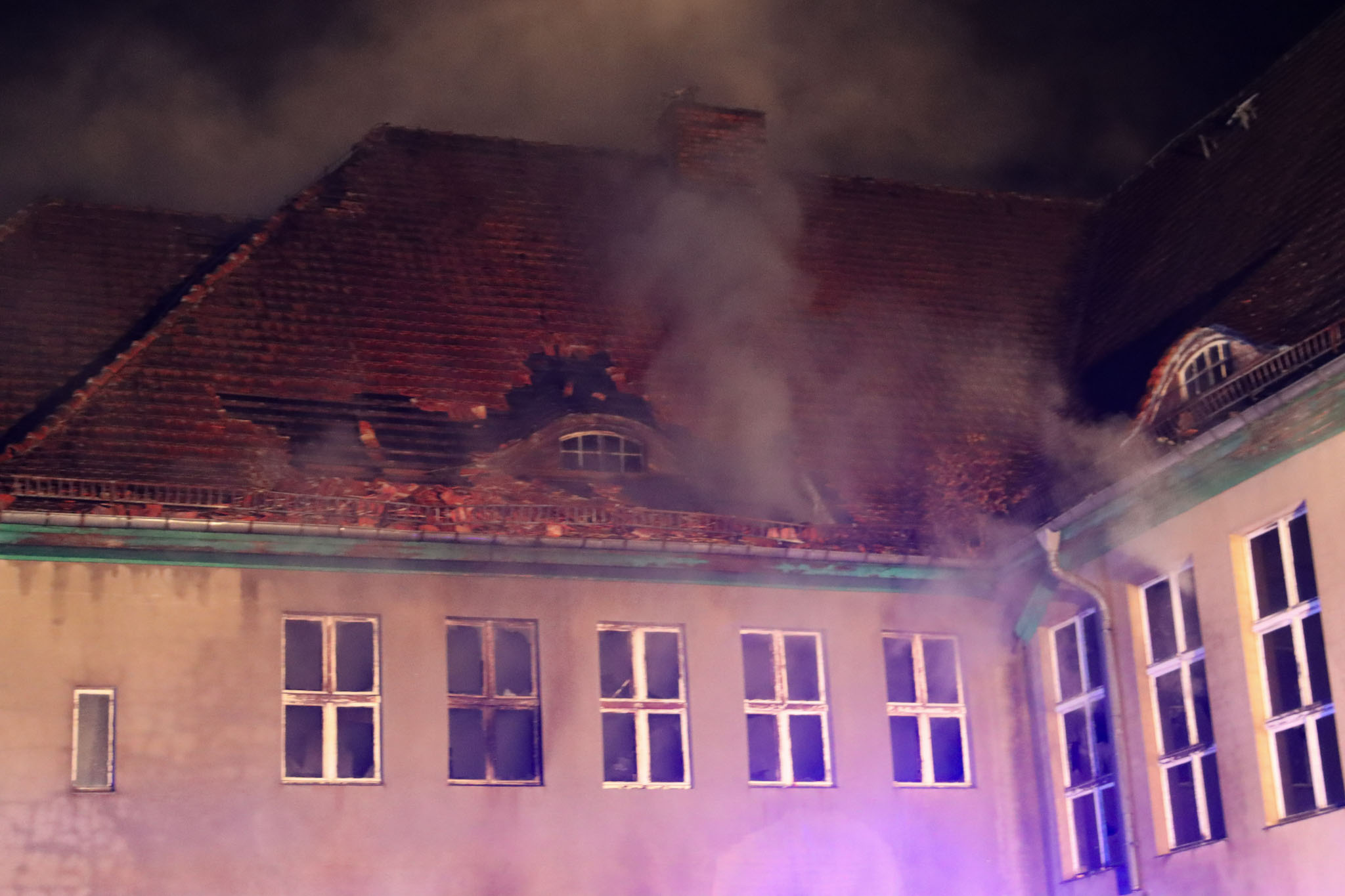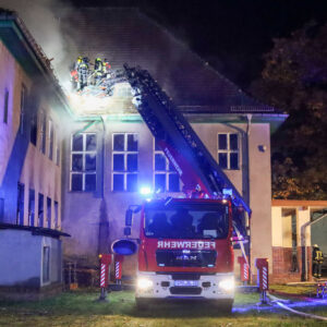 Feuernacht in Friedrichshain (Döbern): Der Dachstuhl einer seit rund 20 Jahren leerstehenden Schule ist in der Nacht zum Sonntag komplett ausgebrannt. Gegen 1:10 Uhr wurden die Einsatzkräfte zu einem „Gebäudebrand groß“ alarmiert. Beim Eintreffen stand das Gebäude bereits auf zwei Seiten und im Dachstuhl in Vollbrand. Das berichtet Blaulichteport Lausitz.