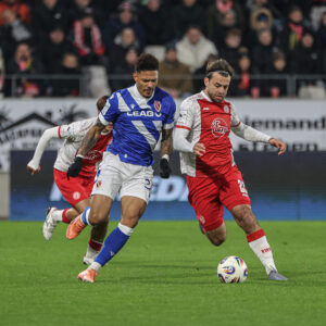 Essen wirft alles nach vorne – und tatsächlich findet Moustier aus 20 Metern traumhaft das Tor zum 2:3. Die letzten Minuten geraten zu einer nervenaufreibenden Abwehrschlacht. Funk pariert mehrfach, Safi kommt beinahe zum Ausgleich, und auf dem Rasen wird es zunehmend hektisch. Kurz vor Abpfiff geraten Spieler aneinander, Becher fliegen in Richtung des Vierten Offiziellen. Sekunden später beruhigt sich die Lage, beide Trainer klatschen letztlich fair ab.