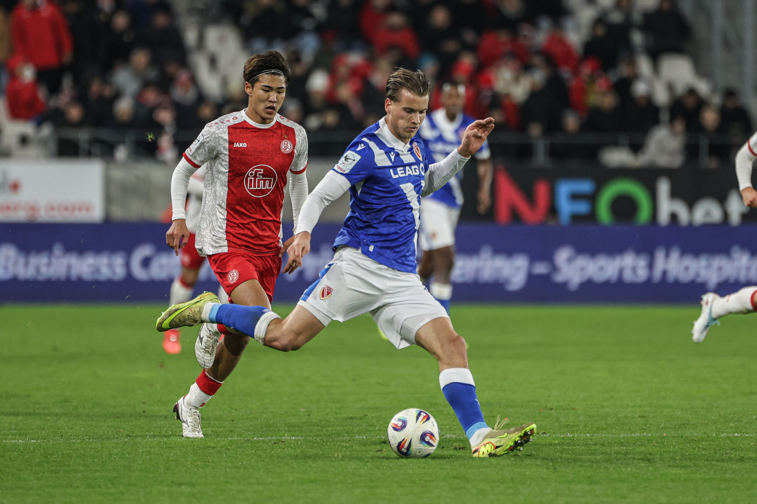 Kurz nach der Pause schlagen die Lausitzer erneut zu. Nach einem weit geschlagenen Ball sprintet Butler davon, während sein Gegenspieler auf ein Aus hofft und abbricht. Butler bleibt cool und schiebt zum 0:2 ein – ein Tor, das Essener Frust spürbar entfacht. Doch die Gastgeber bleiben dran.