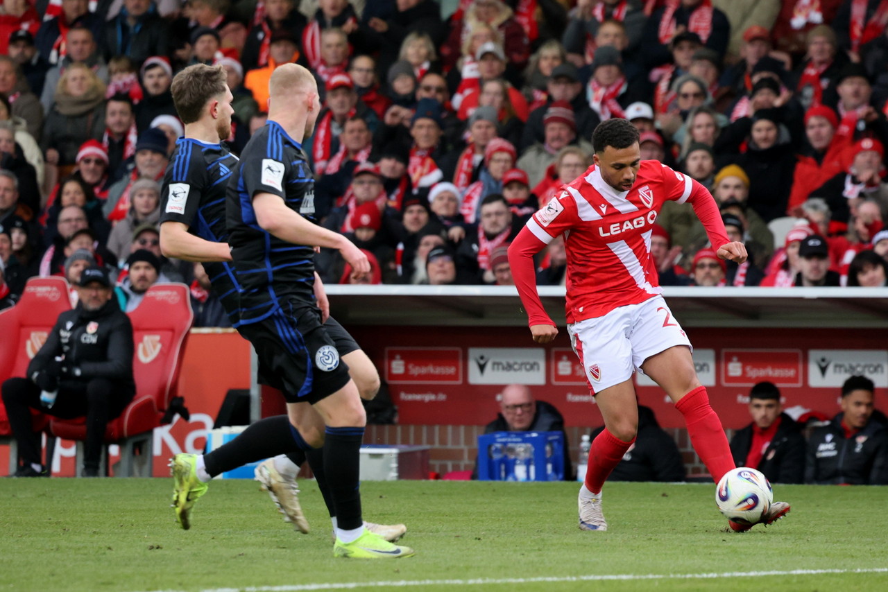 Cottbus startete aggressiv, mutig und enorm zielstrebig – ein Pressing wie aus dem Lehrbuch. Die frühe Führung durch Engelhardt, vorbereitet von Dauer-Unruheherd Biankadi, war die logische Folge. Auch nach dem Seitenwechsel behielten die Lausitzer erst die Kontrolle und erhöhten durch Biankadi eiskalt auf 2:0.