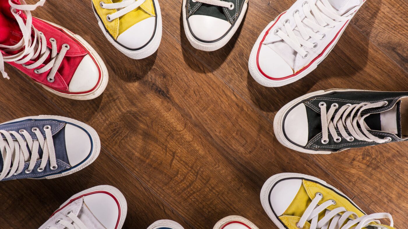 Schuhe von Jugndlichen in einem Kreis aneinander gereiht
