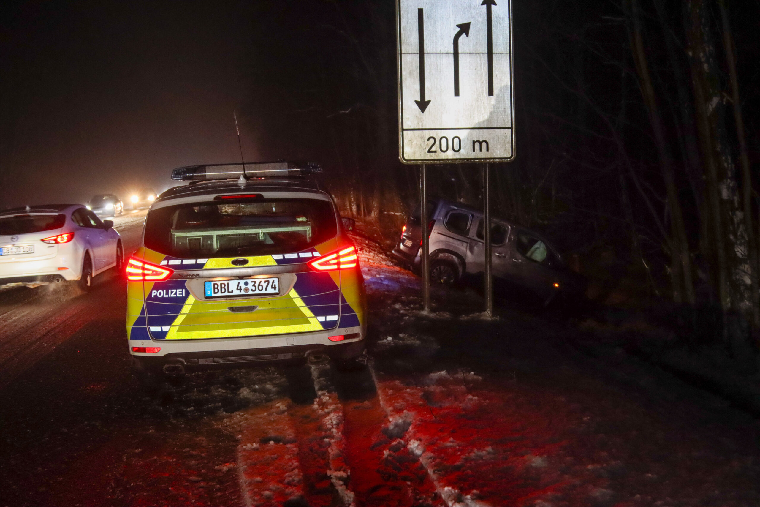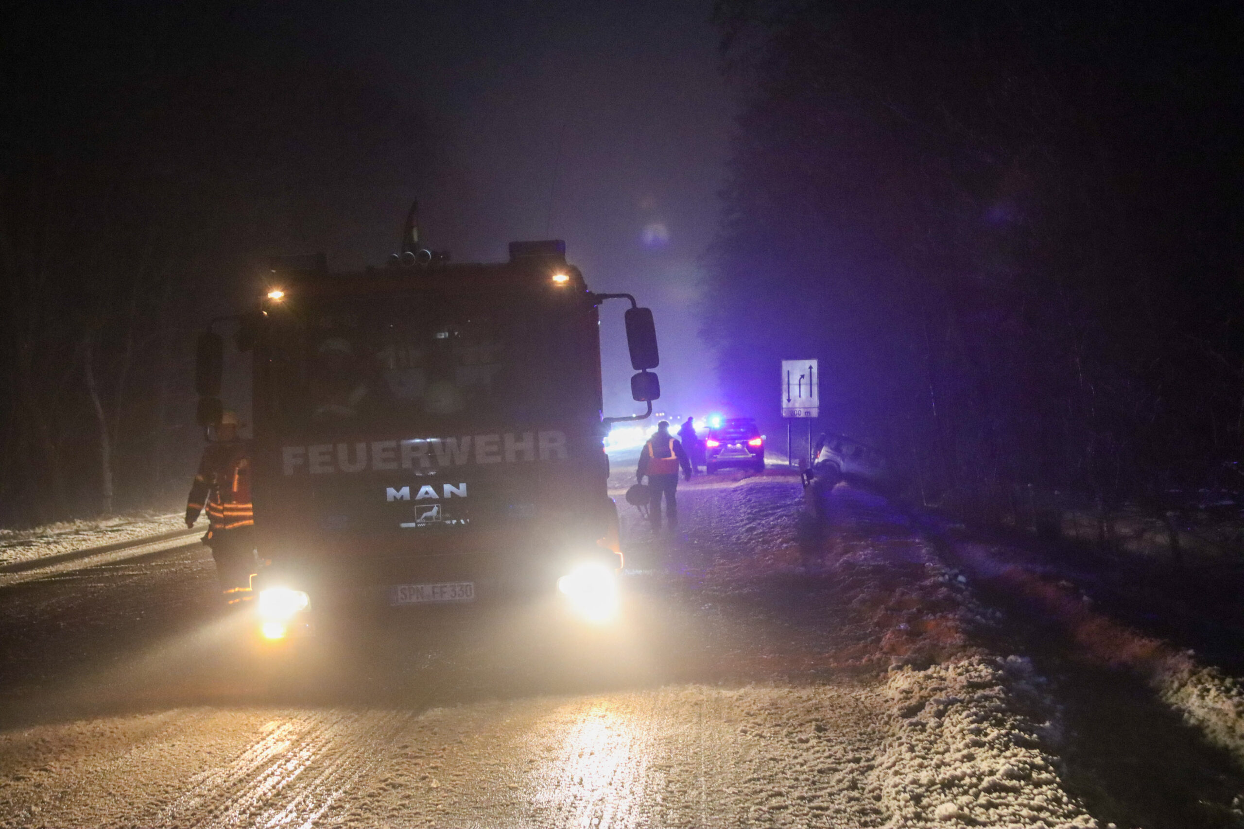 Die Feuerwehr sicherte die Einsatzstelle, stellte den Brandschutz sicher und leuchtete den Unfallbereich aus. Der beschädigte Pkw musste von einem Abschleppdienst geborgen werden.