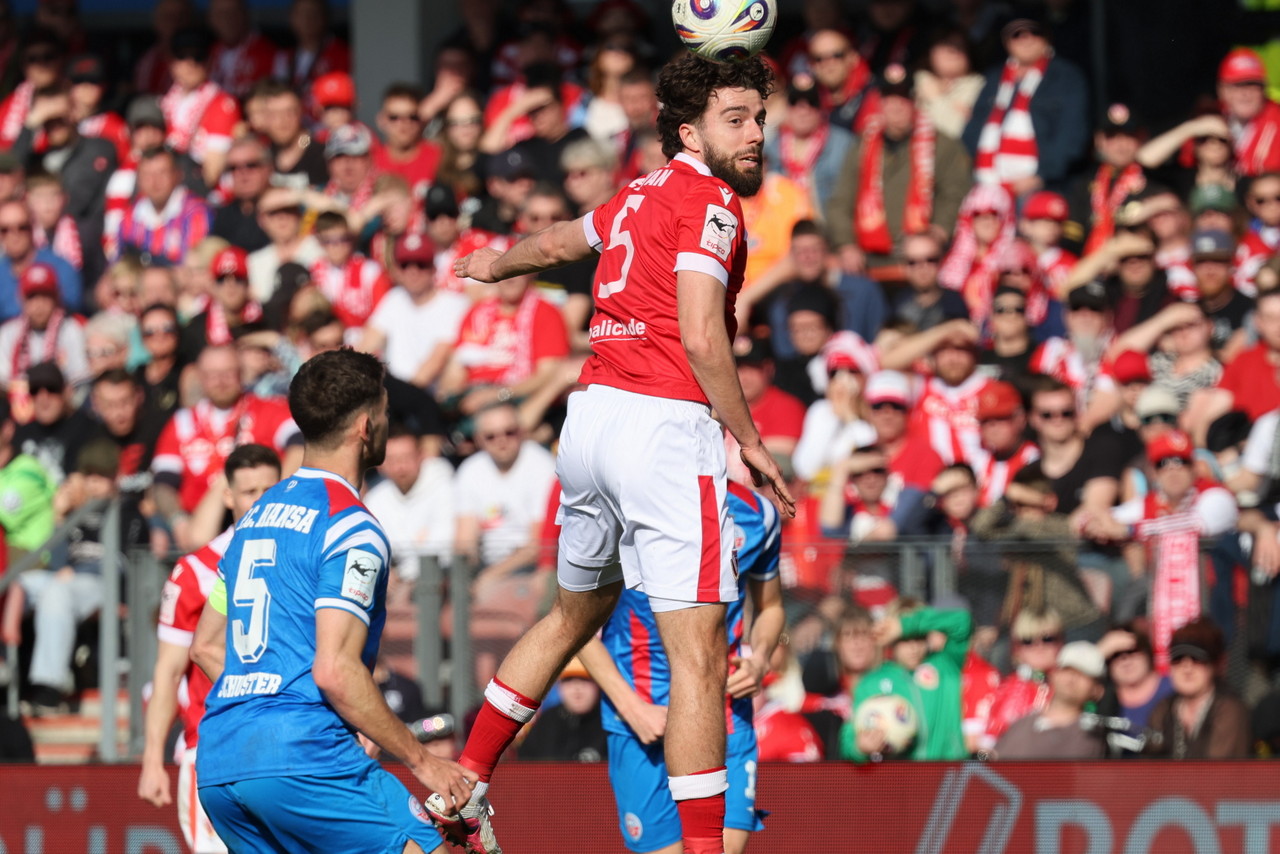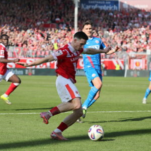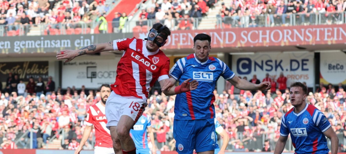 Besonders brenzlig wurde es nach gut 80 Minuten. Eine abgefälschte Flanke von Mejdr landete am zweiten Pfosten direkt bei Christian Kinsombi. Der Rostocker stand völlig frei und hatte aus kürzester Distanz die große Chance auf den Führungstreffer. Doch offensichtlich überrascht von der Situation schoss er aus etwa vier Metern nur Verteidiger Manu an.