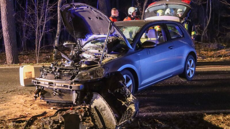 Auf einer Ortsverbindung zwischen Drebkau und Casel hat sich am Samstagabend ein schwerer Unfall ereignet. Ein Autofahrer kam mit seinem VW gegen 21:13 Uhr von der Fahrbahn ab und prallte gegen einen Baum.