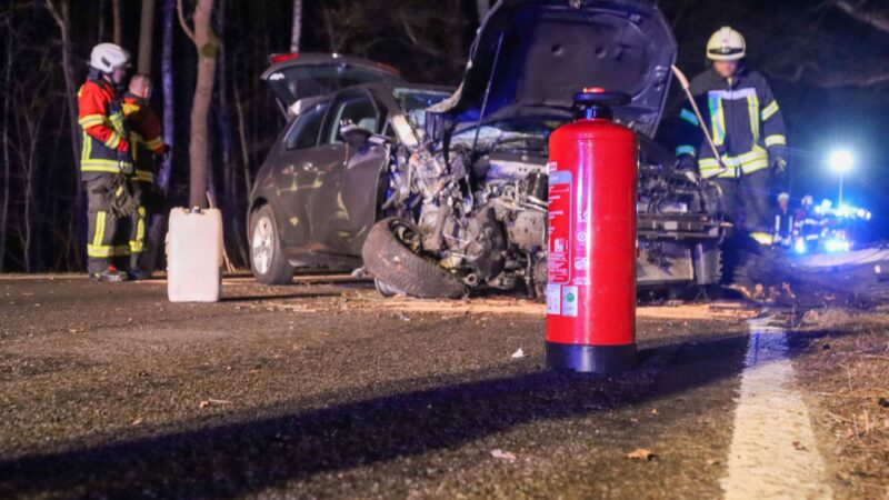 Nach ersten Informationen war der Wagen zunächst nach rechts von der Straße abgekommen. Dabei stieß das Fahrzeug zunächst gegen ein Straßenverkehrsschild, bevor es anschließend gegen einen Baum prallte.
