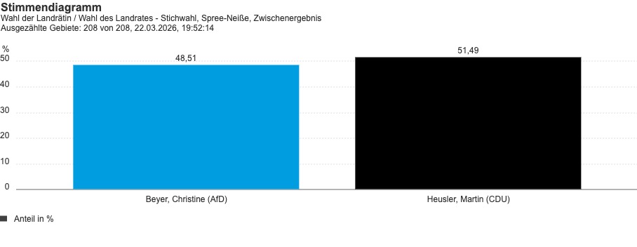 Auch im Schlussspurt aus Forst und dem Amt Burg legte Heusler weiter zu. Kurz vor dem Ende der Auszählung wuchs sein Ergebnis erst auf 51,03 Prozent, dann auf 51,26 Prozent und schließlich auf 51,49 Prozent.