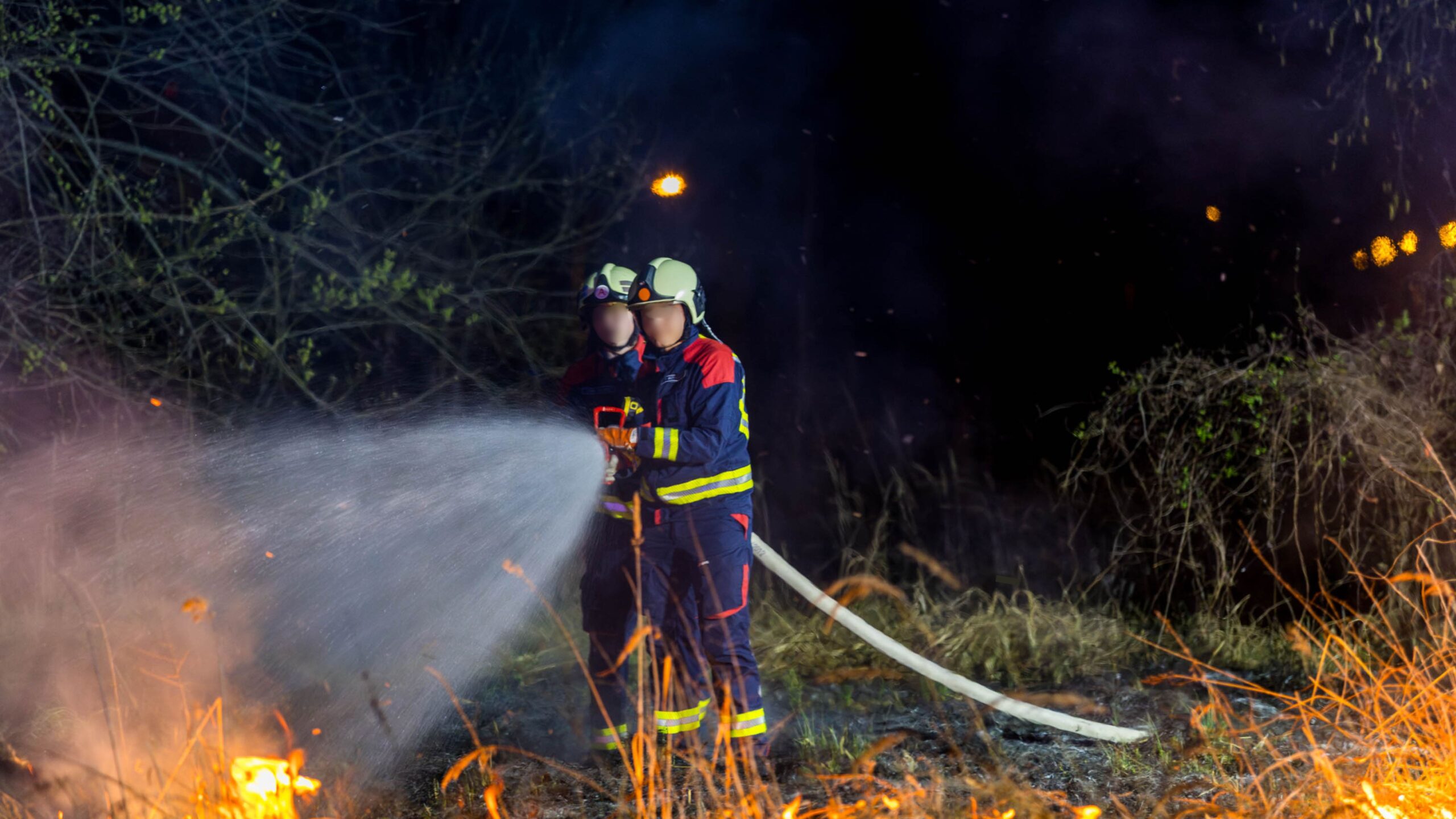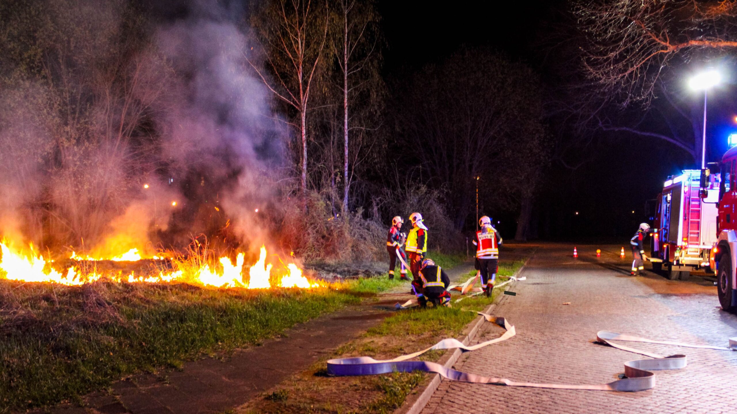 Mit zwei Strahlrohren gelang es den Einsatzkräften, den Vegetationsbrand schnell unter Kontrolle zu bringen. So konnte verhindert werden, dass sich die Flammen auf weitere Flächen ausbreiten.