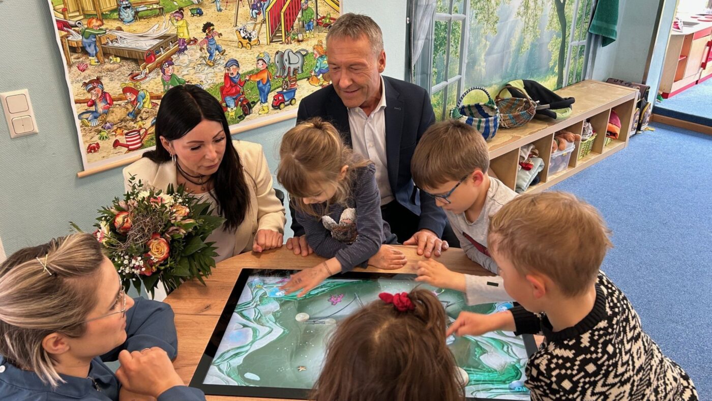 In der Kita Wirbelwind in Schipkau sorgt ein neuer Spieltisch für leuchtende Augen: Die Einrichtung hat jetzt ein digitales Lern- und Spielgerät bekommen – finanziert durch eine Spende.