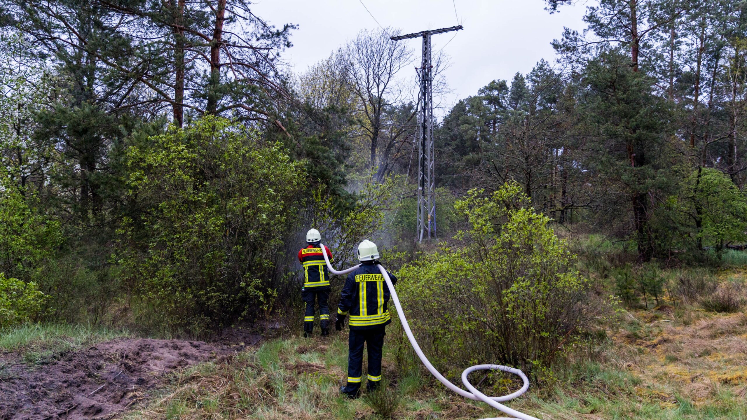 Solange die Leitung unter Spannung stand, war ein Löschen zu gefährlich. Erst nachdem der zuständige Netzbetreiber die Leitung abgeschaltet hatte, konnten die Feuerwehrleute eingreifen.